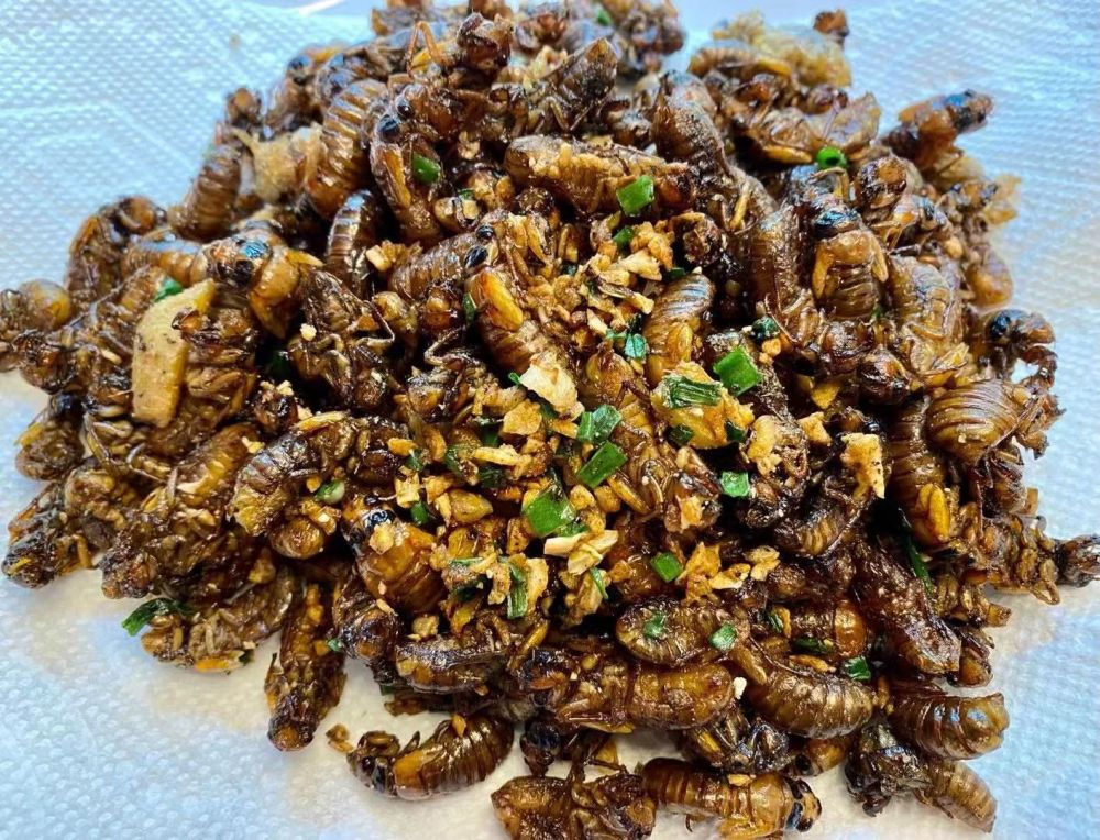 • 哈哈,好吃吗?应该很脆!知了炸了会不会只剩壳了? -碧蓝天- ♀