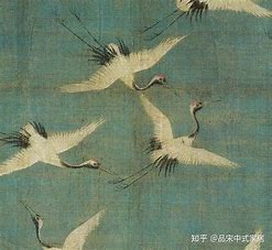 宋徽宗对飞禽,特别观查入微,除了生动外,还把画的佈局弄得很特别。