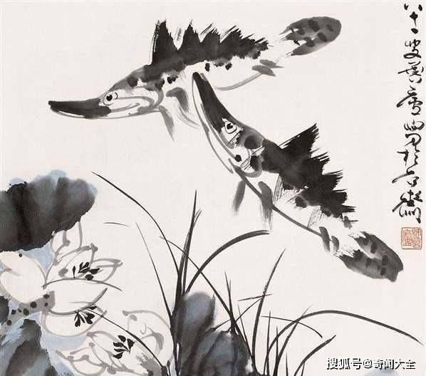 齐白石很喜爱八大山人画的鱼,也曾借过他的画来拟摩,但都得不到八大的“嘻笑讽世”风格,这幅鸭嘴鱼,就是自我创作的怪鱼画,来PK一下八大的有名鱼画!