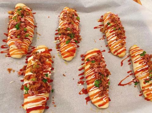 本周末,有个老奶奶带了8岁的外孙,来我家做客,老奶奶爱喝养生汤,故特别炖了银耳红枣枸杞汤给她喝,8岁的小外孙是在美国生长的,喜爱吃汉堡,香肠等洋玩艺,故烤了香肠肉松包让他吃。