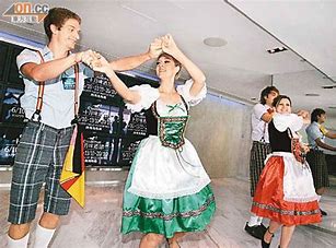 晚饭吃的是卤猪脚,白香肠,沙拉,面包,当然人人都叫一大杯当地的德国啤酒,我只喝了几口,酒精浓度蛮高的,怕喝醉。饭后有跳巴伐利亚的土风舞,人人都可上场,男的都戴着绿绒帽插了一根白羽毛,女的都穿着大裙子,外面白杉上套个短皮背心,白袜子黑布鞋,跟着手风琴和萨克斯风音乐,开心大笑的对着跳。