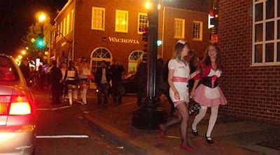 每年在DC的乔治城的鬼节,化装大游行,都是各台电视转播的主题。近万人的大队伍游行,各种化装衣服,面具,道具,都是费钱,费心思的特别设计。