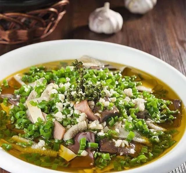 菜是由传统的麻辣毛血旺演变而来,突出的是青椒和花椒的鲜辣鲜麻风味。
