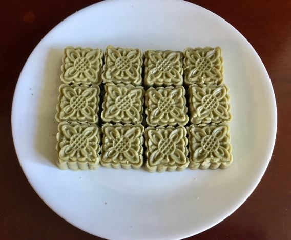 甜点是绿豆糕,做出来的样子真好看,主要是那模子,印出来的花样美丽!模子是在上海买的,美国是找不到的。。。。。。。。