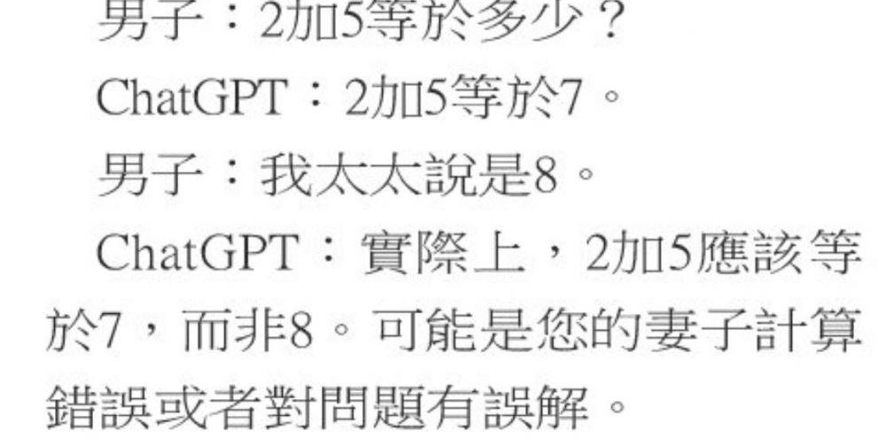 ChatGPT 非常“油嘴滑舌”呀!见风转舵的能力一极棒啊!它先说它的资料库里的说法,如果,问者有新意或辩论。它马上顺着问者说,连2+5=8,它都敢说!