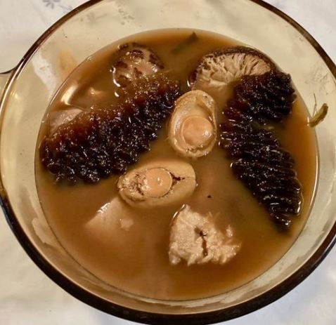 本周末,想吃些荤菜,於是烤了几串广式叉烧肉,等冷了,用利刀切薄片,然后,加点中国芥蓝菜,做叉烧煲饭。佛跳墙也是简单版的,就是海参,鲍鱼,香菇,笋等,吃个鲜味。超市有减价的大黄鱼,老公特爱吃红烧的鱼头,就再做一次吧!