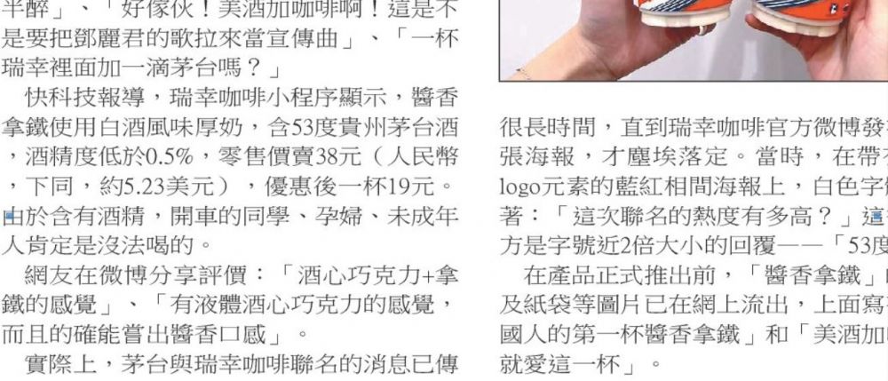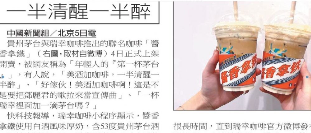 我正在翻看今天的世界日报,说什么最新口味,美酒加咖啡,酱香拿铁!