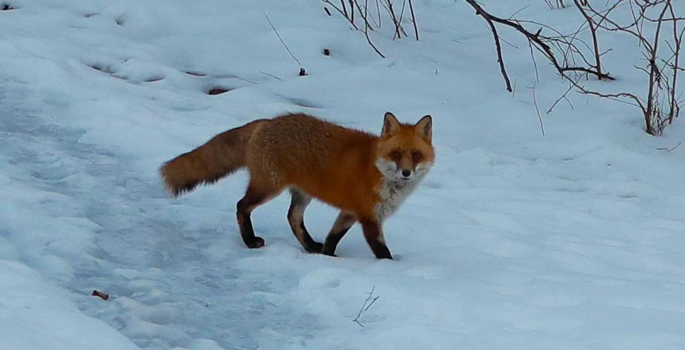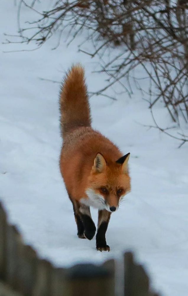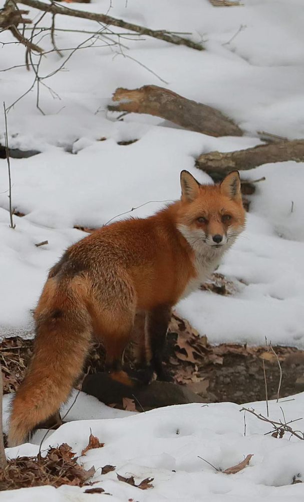 今天才发现,那两只狐狸原来是我家的邻居 ,我经常看见两只狐狸在我家屋后面的树林里窜来窜去的,因为距离远都没拍好,今天我在家里 ,突然看见一只狐狸,就在离我家阳台近二十米的一个雨水管道口旁边站着,我拿起放在沙发上的相机,悄悄地、轻轻地打开房门,可那狡猾的狐狸急速钻进了洞里,我有点恼悔,是不是我开门的声音和我的出现被它察觉到了?我感觉我实在够小心的了,可我还是认为,不管哪国的狐狸都狡猾。好在我不甘心,把沉重的相机架在阳台的栏杆上,耐心等待那狐狸再次冒出来,我没穿棉衣,没戴帽子,坚持了五分钟的样子,我的鼻涕都流出来了,我正要准备回屋去,嗳——!那家伙出来了,我赶紧按快门连拍了几张。顺便说一句,这里的鸟怕人也不好拍,拍到了也要碰运气。