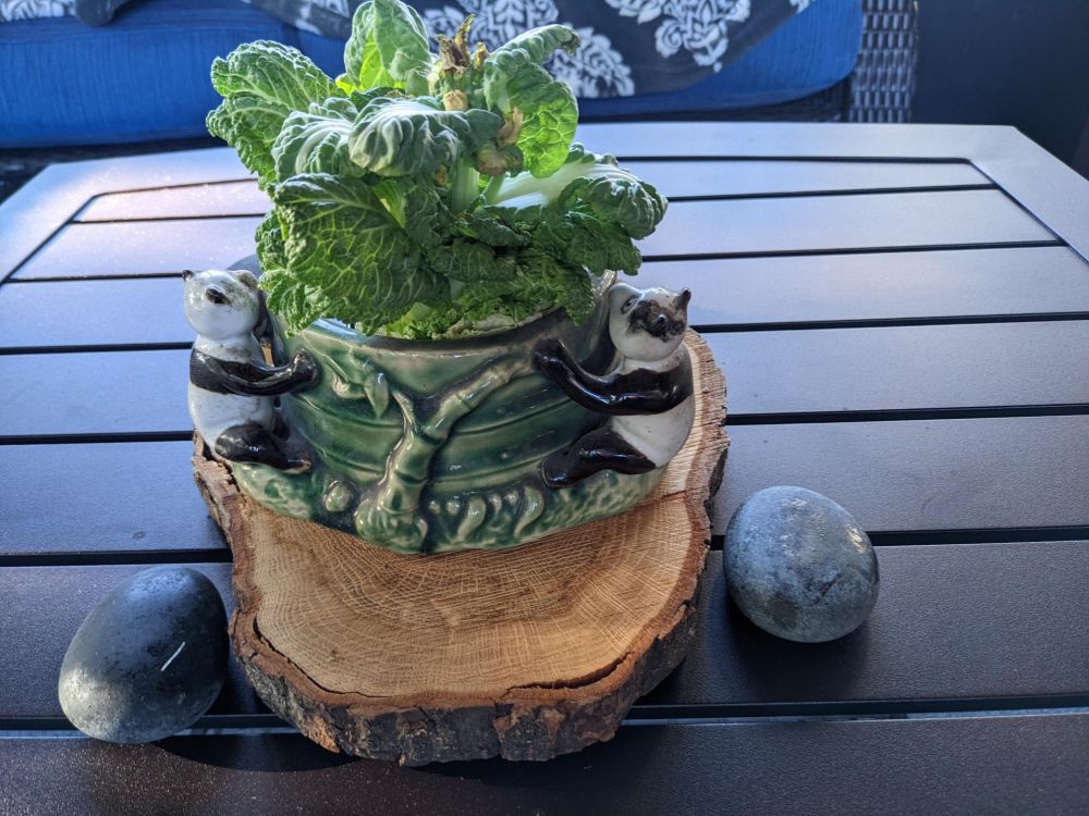 顺间变成了 桌上的小装饰品,挺有风味的!大家以后有烂菜根不防试试!