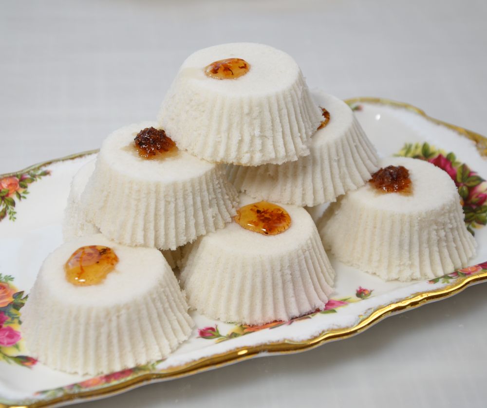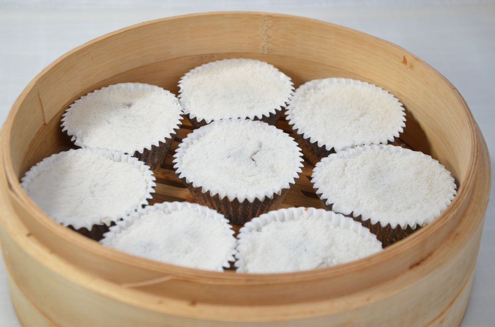 我没有专用的方模,摸索了几次觉得用这种带锡箔纸的cupcake的纸杯也很好用,大小刚刚好,脱模也容易。一次可以多做一些冻起来,早上蒸一下当早点非常不错。