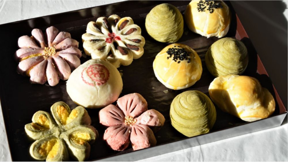 Lotus paste, date puree, coconut paste, red bean paste, red bean paste + salted egg yolk