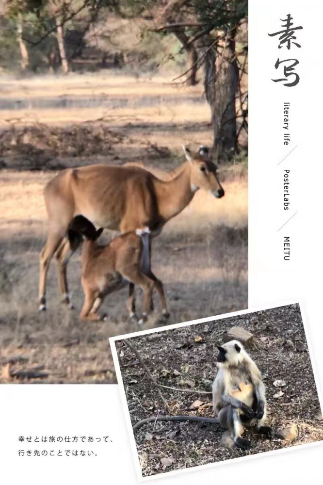 那边鹿妈妈在喂小鹿吃奶,鹿爸爸在旁守护,这边几只猴子加我们看着津津有味。