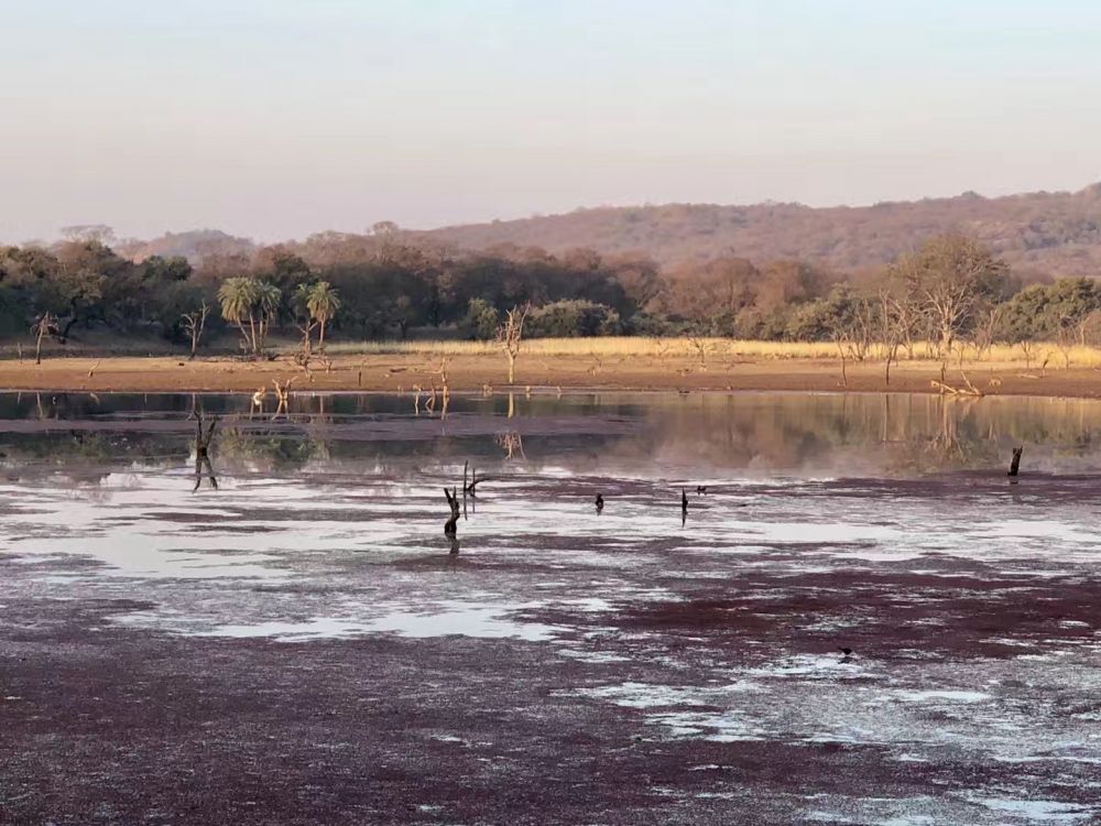 童话的开头还挺真实,动物们只要不在食物链上挨着,就相安无事。即使挨着,上家不饿也不杀生。这不,一头黑熊在挖蚁穴,孔雀们在旁边溜达(见视频)河边鳄鱼趴着晒太阳,斑点鹿群,孔雀们和各种鸟在喝水。野猪和羚羊一前一后地边走边吃。(动态录像见视频)