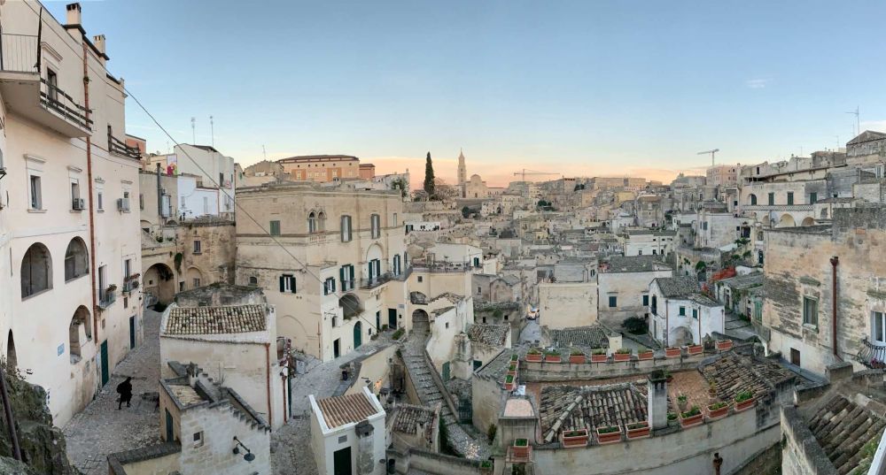 12/27 Matera, 泰拉石窟民居形成于旧石器时代的穴居城。我们的酒店是老城区的山洞改造的。车停在老城的边缘,等着酒店来搬行李和valet Parking。走上老城街道的台阶上,我已经忍不住掏出手机边走边拍。