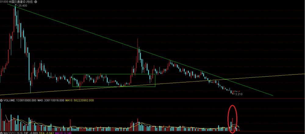 2017年一季度后,港交建沿着5季均线一路下滑到现在,期间在2019年一季度有一次季K线反攻,在10季和20季均线的联合压制下溃败。如果6月底能突破4.13,则是4年来季K线的第二次反攻。突破4.13意义重大,这是季K线第二次反攻的标志信号。目前已到5季均线的压制位置。