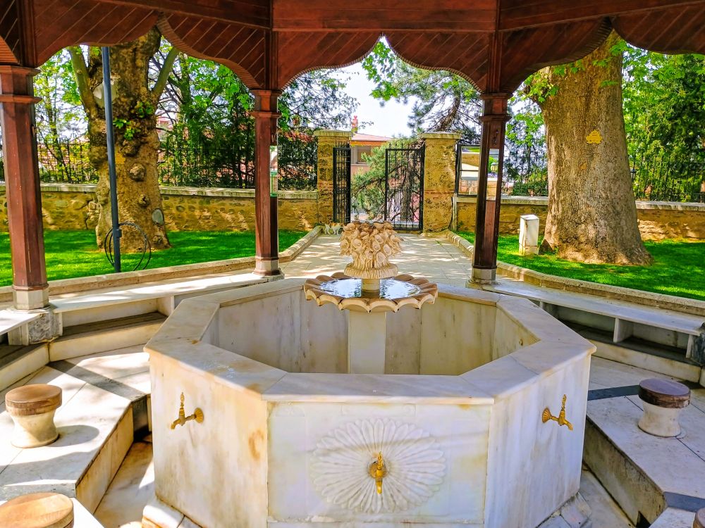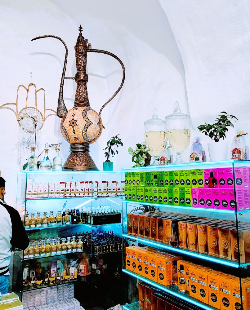 据说自罗马时代以来,布尔萨因具有疗愈功效的温泉而闻名。一些历史悠久的浴场至今仍在运营。那天,我们还要赶往其他景点,自然是没有时间去泡温泉了。参观完绿色陵墓和绿色清真寺后,离上大巴尚有十几分钟,便去了一个由古老的土耳其浴场改造的商场。该商场主要销售沐浴用品和各类化妆护肤用品,布置得颇有情调。在此,跟一位店主聊了一阵。