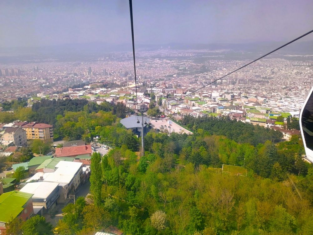 布尔萨坐落在土耳其西北部乌鲁达(Uludag)山脚下,乌鲁达山是土耳其的著名滑雪胜地,夏天则适合徒步登高。我们乘坐了长达9公里的缆车上山,这是世界上最长的缆车之一,沿途风景秀丽。