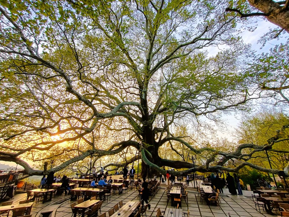 待我们走出食堂,已经晚上6点了,多亏夏天日长,在回伊斯坦布尔的途中,我们先折回布尔萨,去看一棵著名的悬铃木。