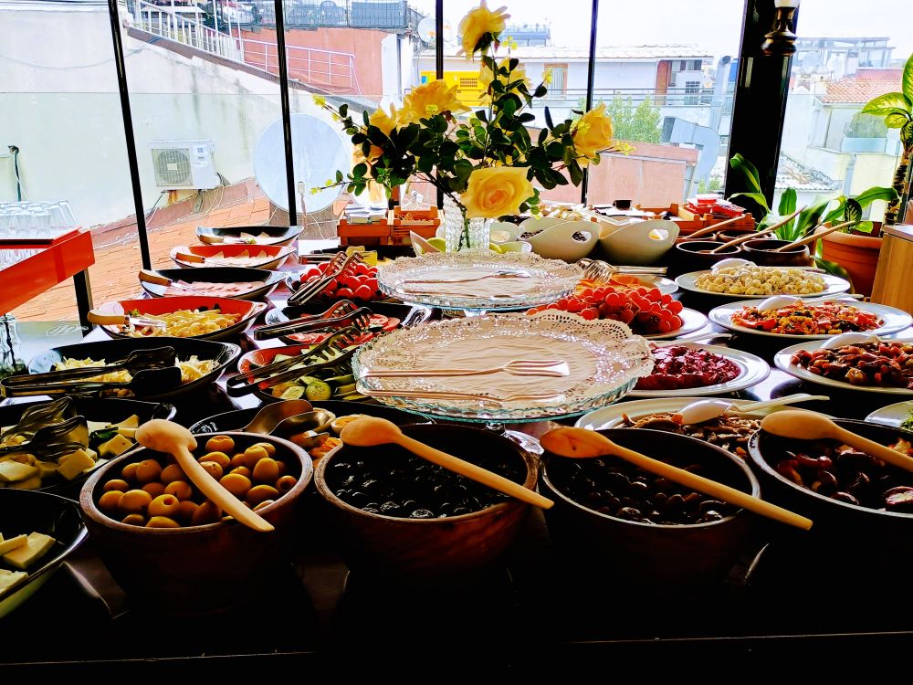 旅店在伊斯坦布尔的老城区,离蓝色清真寺步行5分钟,但开车不方便,街道狭窄,曲里拐弯,旅游大巴开不进来。导游带领我们步行了两分钟,上了停在路口的大巴,这才发现我俩是第二批上来的游客。大巴接着又去了十几个不同的酒店接客,由于伊斯坦布尔交通拥挤,待所有客人上了车,已差不多9点半了。