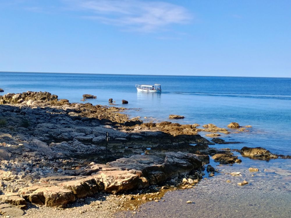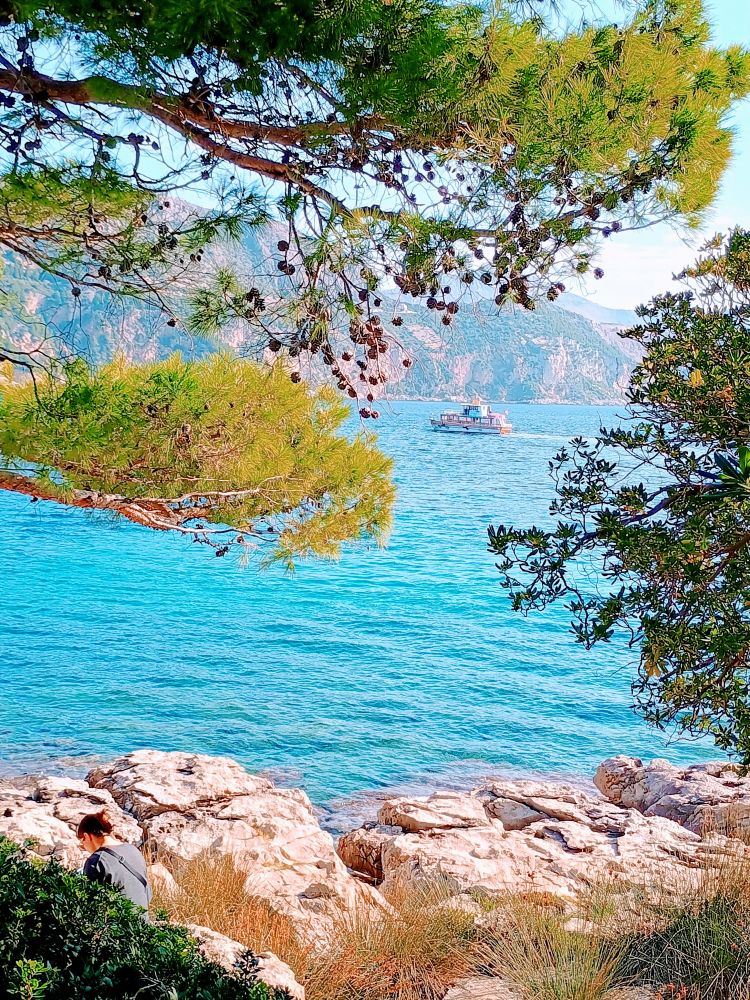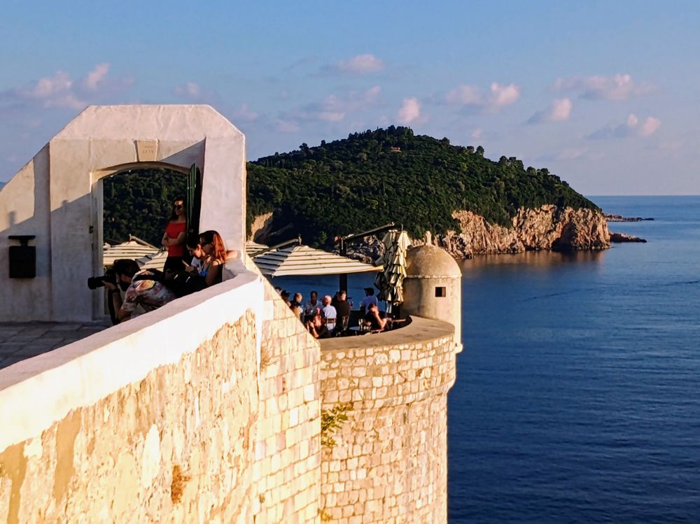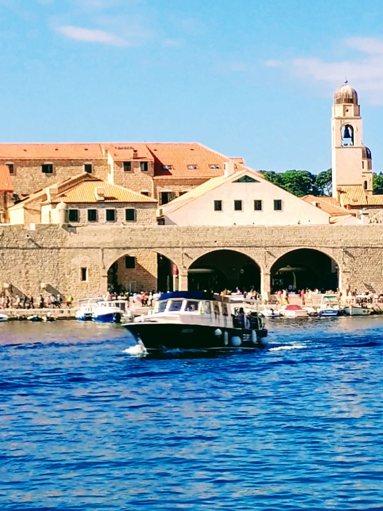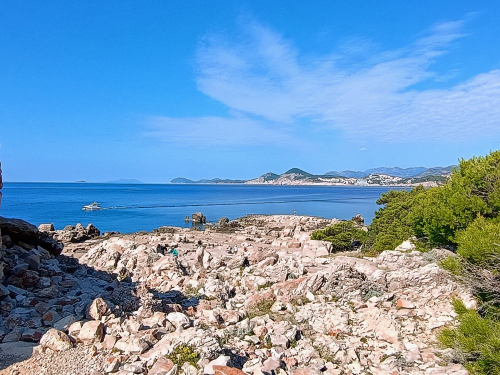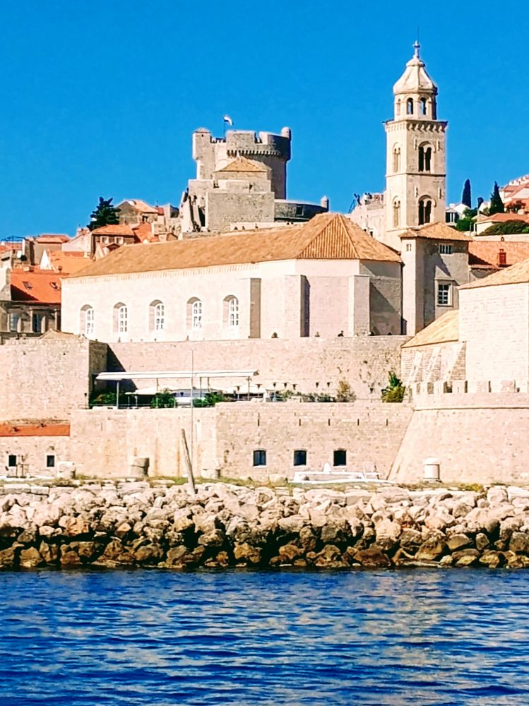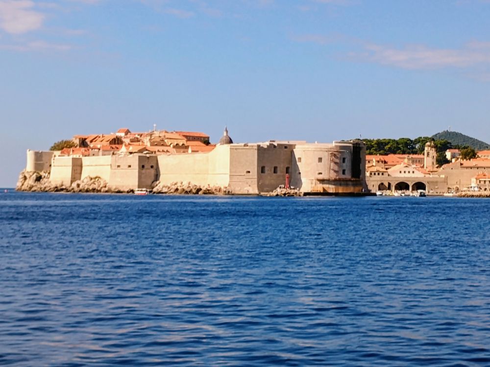 在杜布罗夫尼克(杜城,Dubrovnik)的第二天上午,我们在老城区旁边的老码头搭乘轮渡去了洛克鲁姆岛(洛岛,Lokrum Island)。下图是前一天在杜城城墙上看到的洛岛,看似离杜城很近。