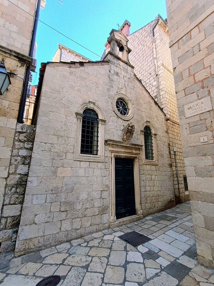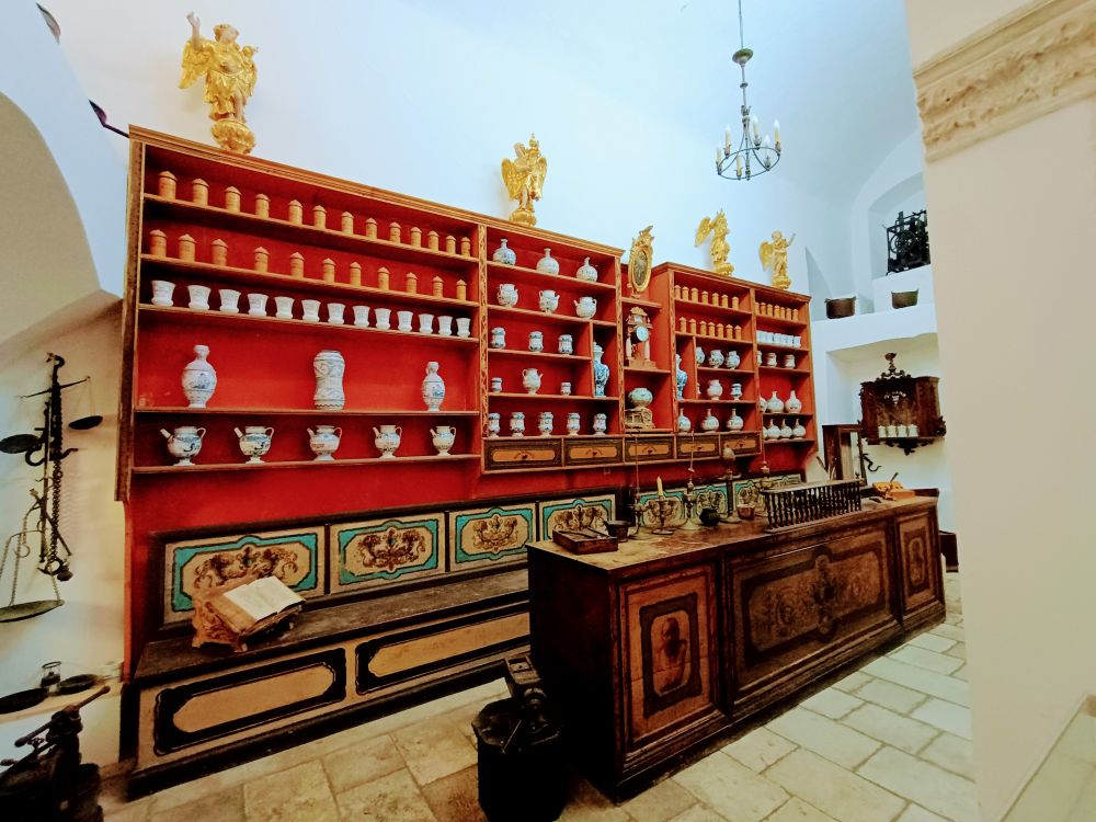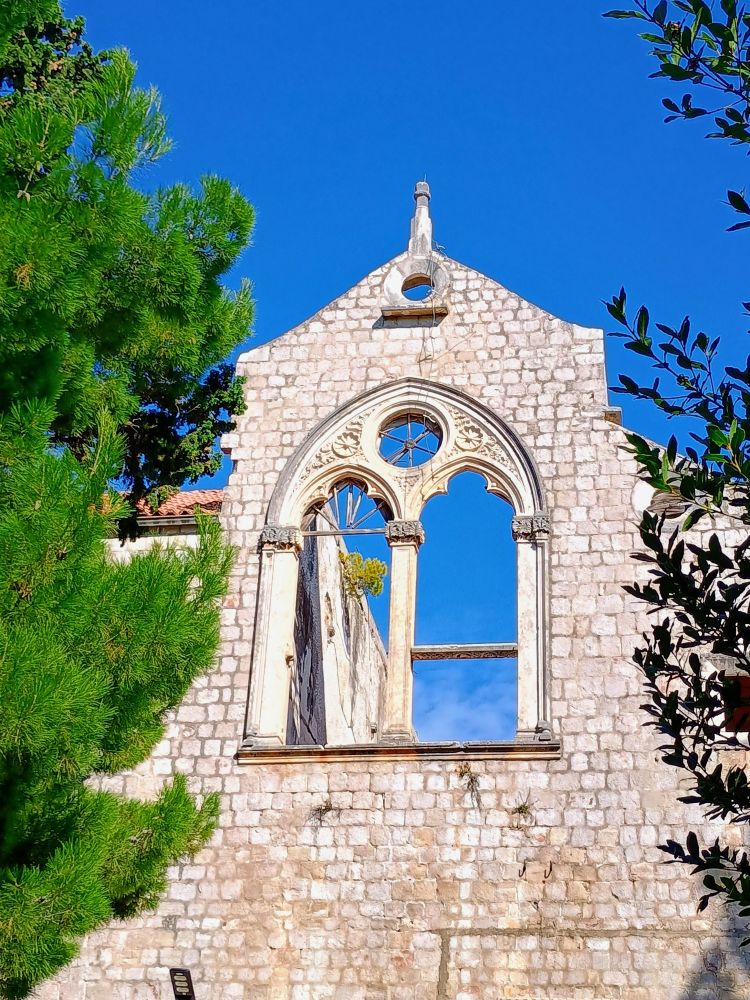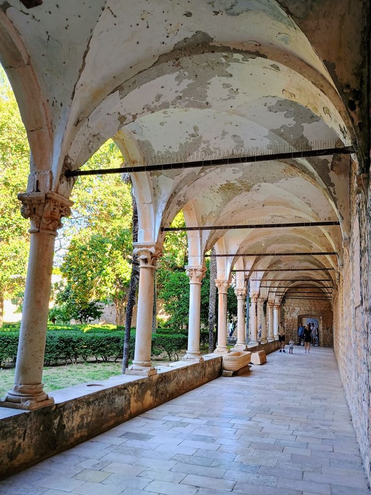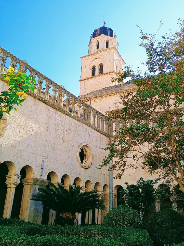 下图为大喷水池旁边的方济各教堂与修道院(Franciscan Church and Monastery),建于1317年,是杜城最古老的宗教建筑之一。图1是教堂祭坛。修道院回廊是哥特式风格,雕刻精美。这里拥有欧洲最古老的药房之一,并收藏了大量宗教文物与古籍。