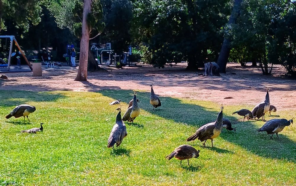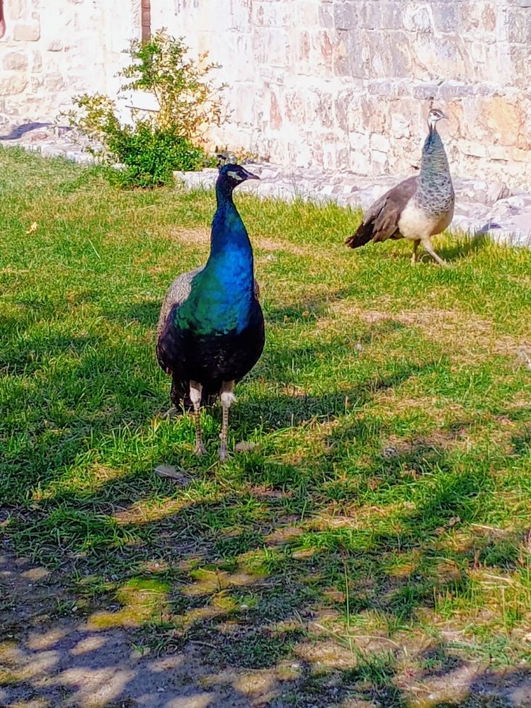 修道院周边是孔雀栖息地,孔雀在修道院遗址自由行走,在附近的绿地上觅食休憩(见下图)。