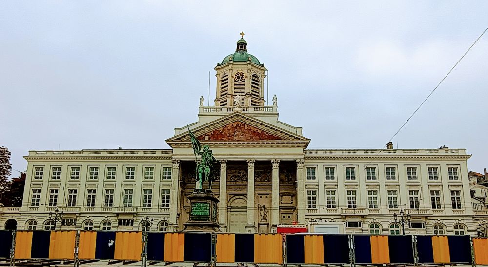 雕像背后是圣雅各伯教堂(Église Saint-Jacques-sur-Coudenberg)(见下图)。这座教堂是新古典主义风格的代表作,建于18世纪,曾是比利时王室的重要礼拜场所。教堂的背后是布鲁塞尔皇宫 (Royal Palace)。皇宫每年7月1日至8月31日对外开放,我们是10月去的,错过了开放时间。