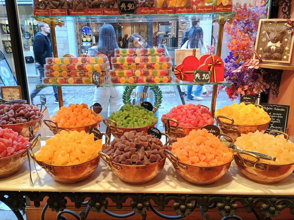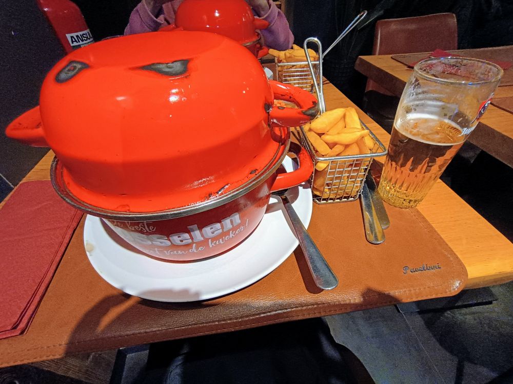 大广场附近非常热闹,巧克力店、甜品店、餐馆比比皆是。我们在广场旁边的一家餐馆用了午餐,是青口、薯条、啤酒套餐,在这家用餐的食客基本都点这一款套餐。
