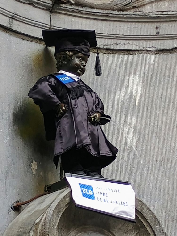 小尿童被誉为“布鲁塞尔第一公民”,拥有800多套衣服。我们去的那天,由于大广场上正在举行布鲁塞尔自由大学的毕业典礼,小尿童穿上了学位服。