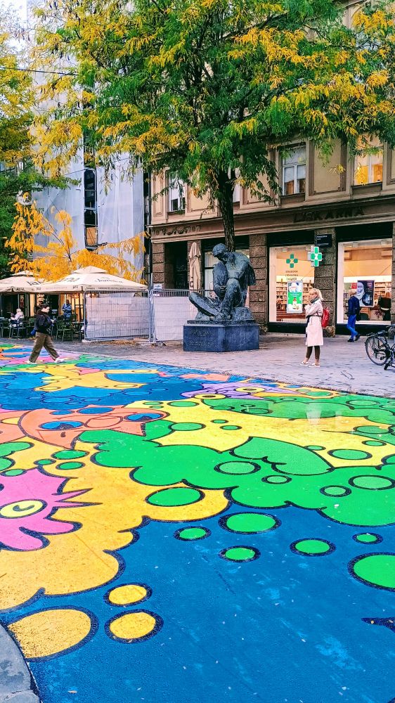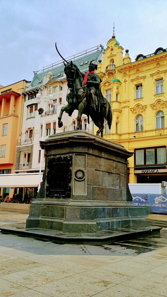 说一点题外话:当我把广场的图片放在微信九宫格中,一位北京朋友看到后,立马给我留言:图片看起来好亲切呀!我住过雕像后面的黄楼顶层,黑铁栏杆小阳台的那间民宿。那是一间漂亮别致的loft复式公寓,位置视野都很好。当地朋友说,我们住在了萨格勒布的天安门广场上。