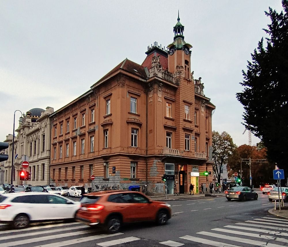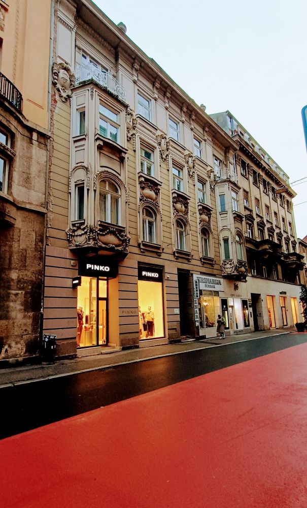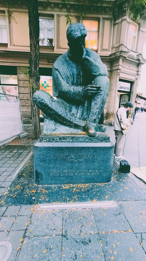 这会儿已近黄昏,我俩决定去下城区市中心的商业街逛逛。街上熙熙攘攘,暮色遮不住奥匈风格建筑的华贵气派。下图按顺序是街头建筑、五彩缤纷的路面、发明家特斯拉的塑像、高档商业街、国家剧院、国家档案馆和城市花园、一所普通中学的校舍、气象地球物理研究所大楼。