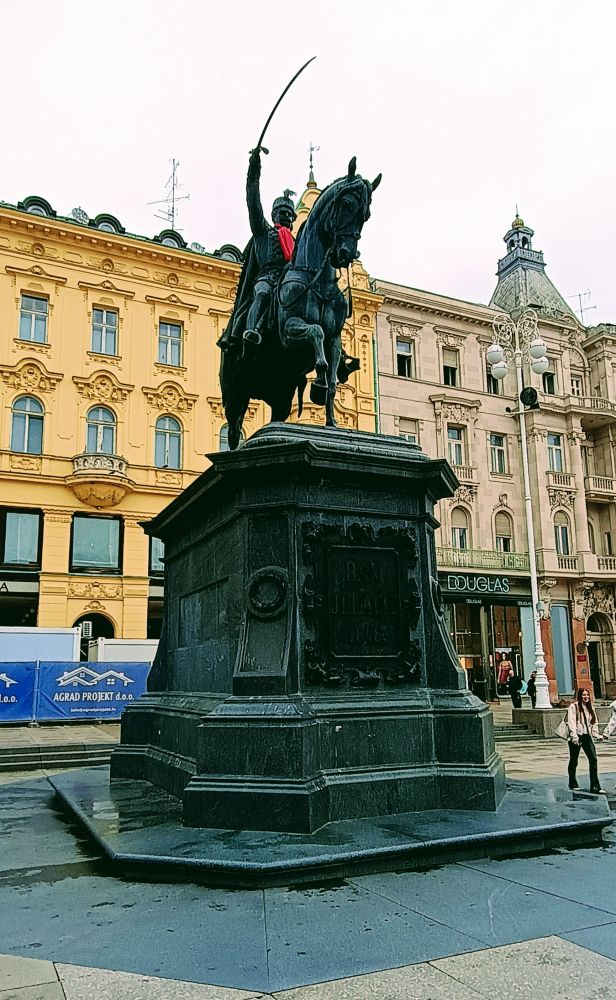 我们在下城的中心——耶拉西奇广场(Ban Jelacic Square) 下了电车,那里非常热闹,人来人往,大广场上矗立着克罗地亚独立英雄耶拉西奇的雕像(见下图)。