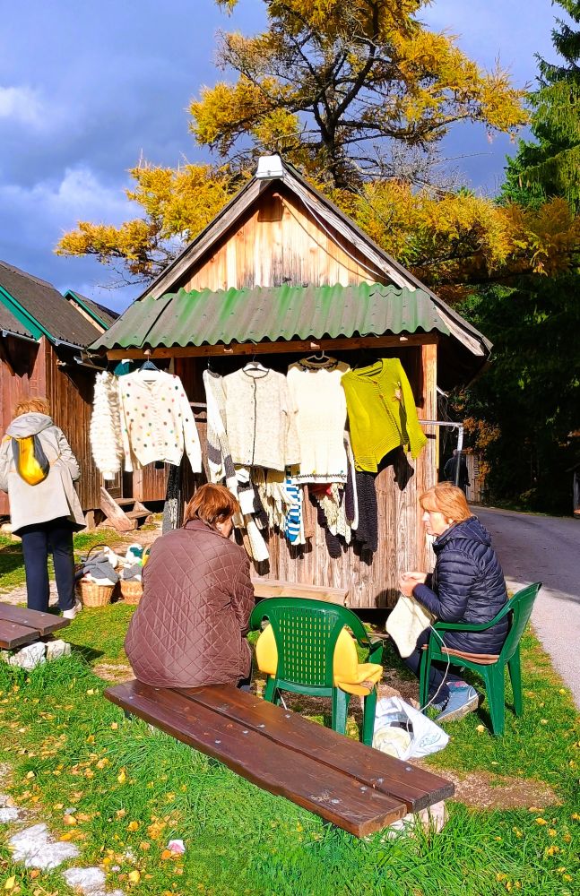 我们在木头村吃了农家饭,一人一大碗咸肉煮卷心菜,较咸,辅食是梆梆硬的面包,硬到掰不开、咬不动的地步。不知是不是当地人的传统食品,硬面包应该可以储藏较长时间吧。下图2是当地妇女出售手工编织的毛衣。下图3-4是当地的小教堂和山区景色。