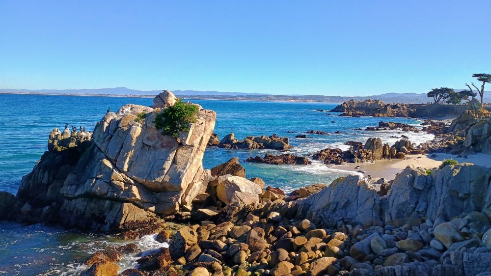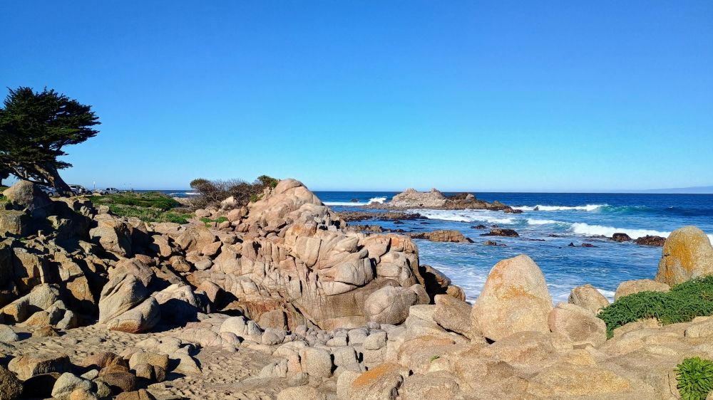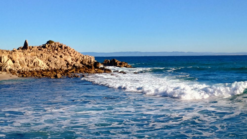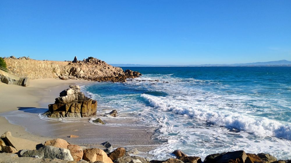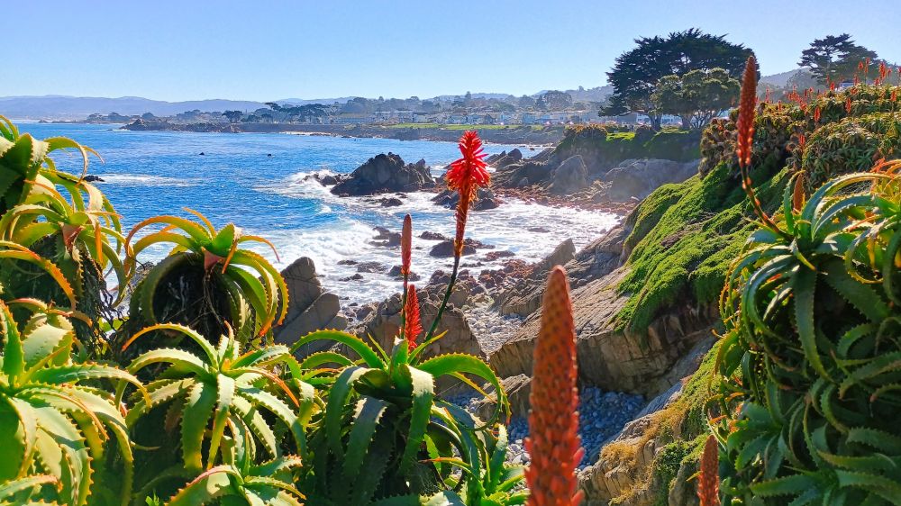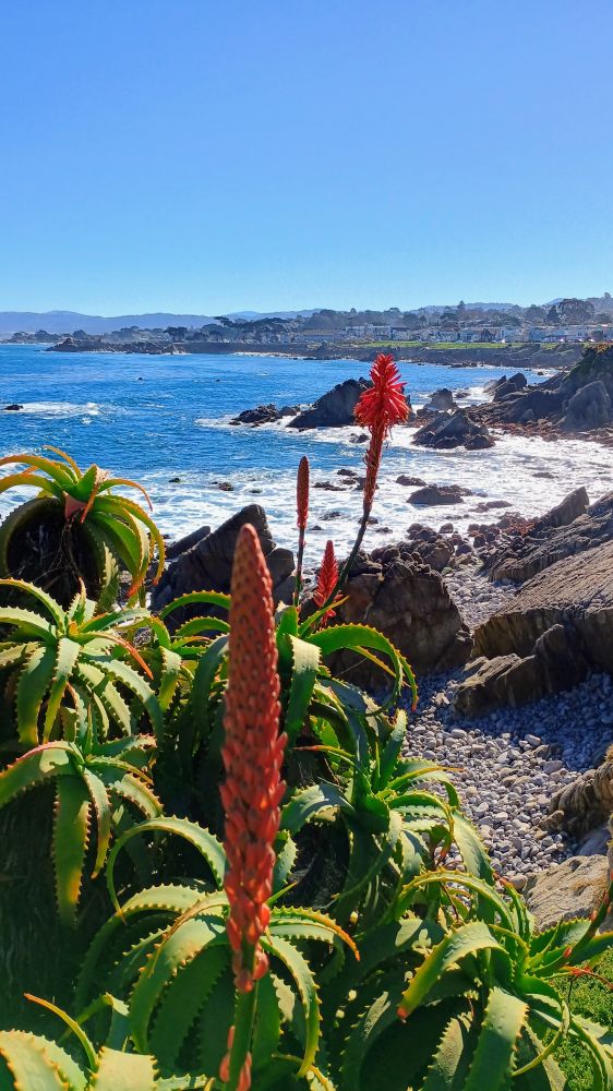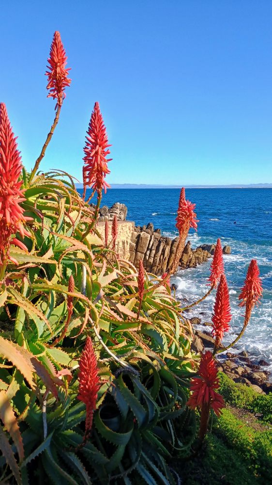 前两天,跟朋友约在海边的“情人角”(Lovers Point) 会面(下图1),蓝色透明的海水,拍打礁石的白色浪花,树芦荟(也称烛台芦荟)盛开的红花,绿茵茵的草地和高高的柏树,美得令人流连忘返。