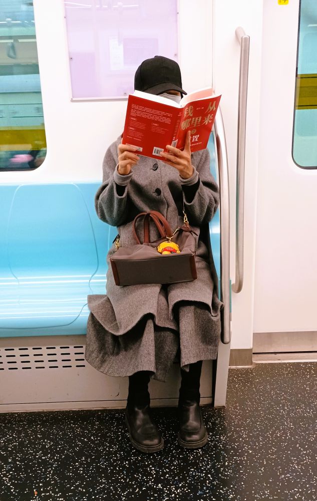 一天,上来一位时髦小姐姐,从书包里拿出一本厚书认真阅读,书名是:《钱从哪里来》。