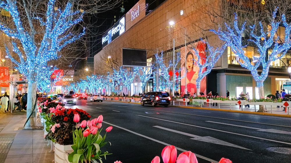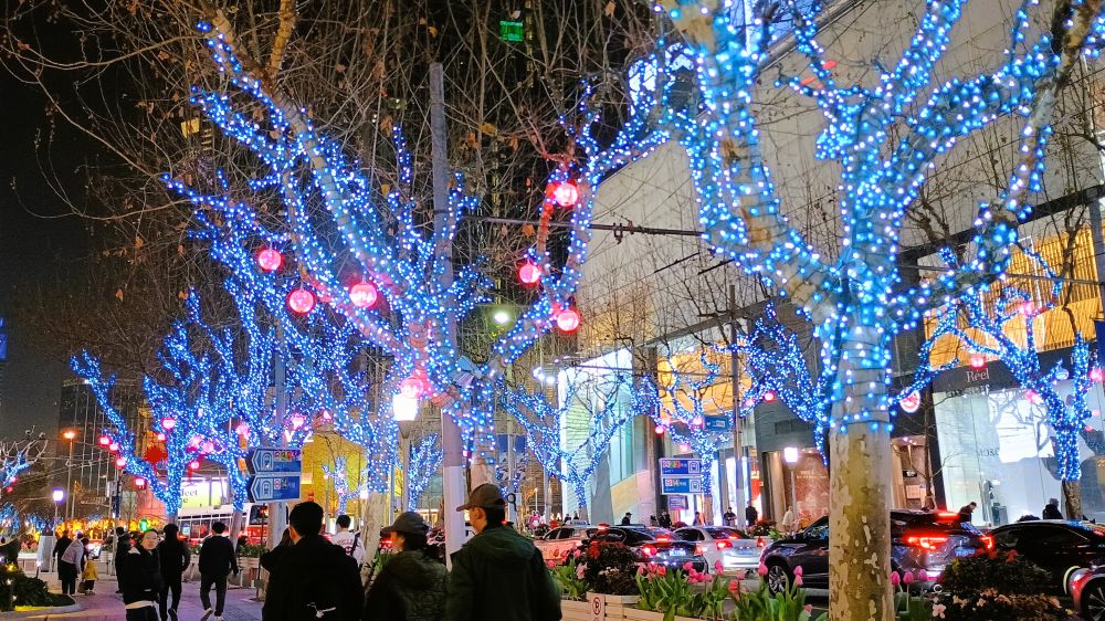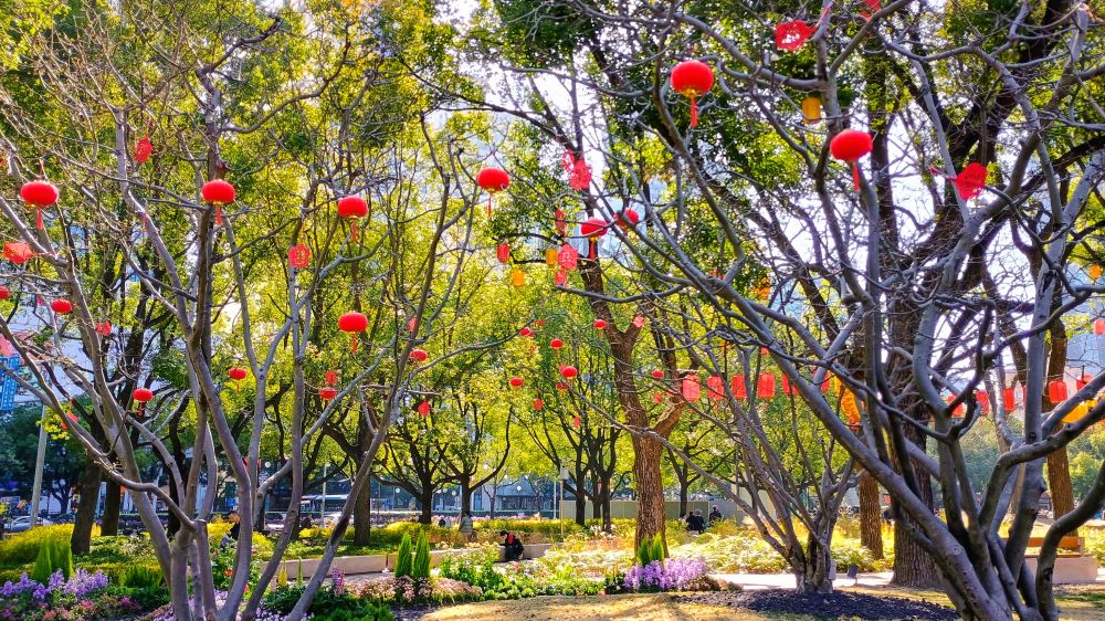 春节期间,大街小巷有不少节日装饰,以红灯笼和红色中国结为主。到了晚上,主要街道张灯结彩,比起西方的圣诞节,灯光装饰有过之而不及。