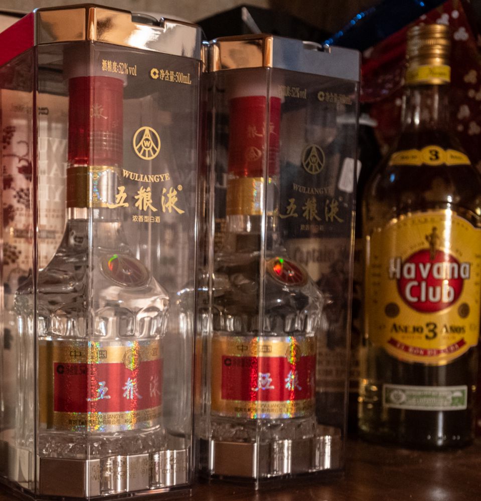 昨天检查地下室小仓库,发现还有两瓶五粮液、一瓶泸州老窖和两瓶朗姆酒。 平时我们喜欢喝啤酒,白酒没机会喝。冬天喝朗姆酒兑饮料比较好,暖呼呼的。 所以趁着大选的由头,把这几瓶白酒喝了,省得放坏了!
