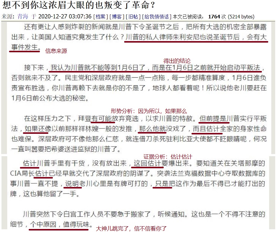 即使这样,川粉理论家也能因为所以一番,然后再以“估计”做为论据,一步一步推出胜利的结论。请看: