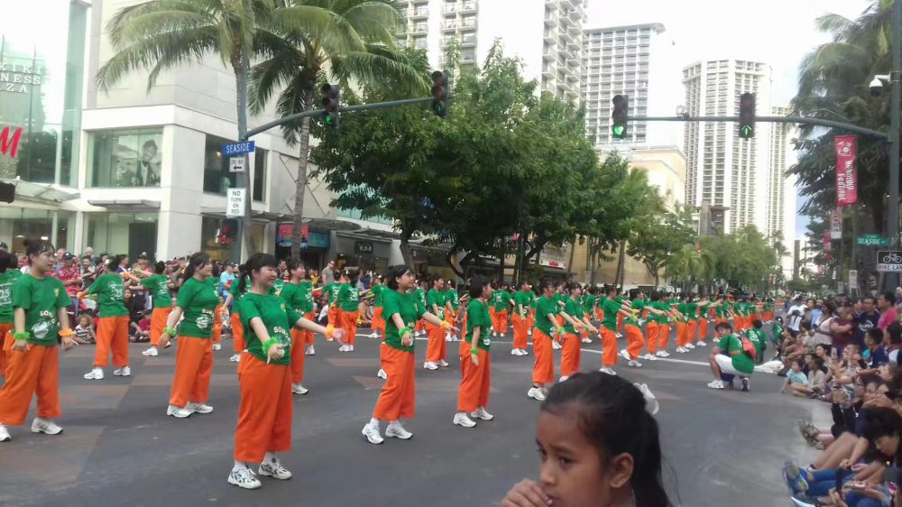 每年泛-太平洋节游行,数百名日本高中少女,