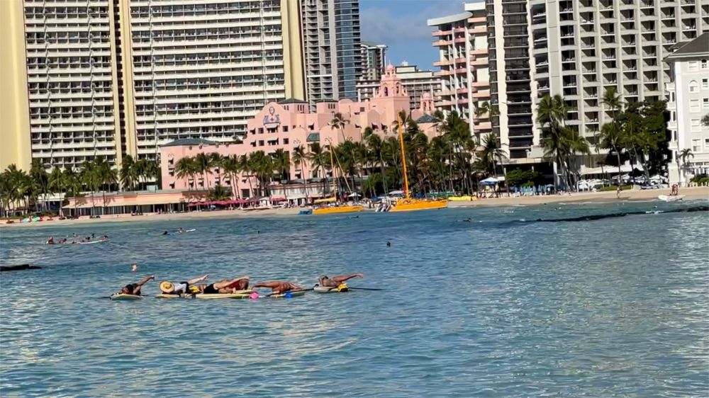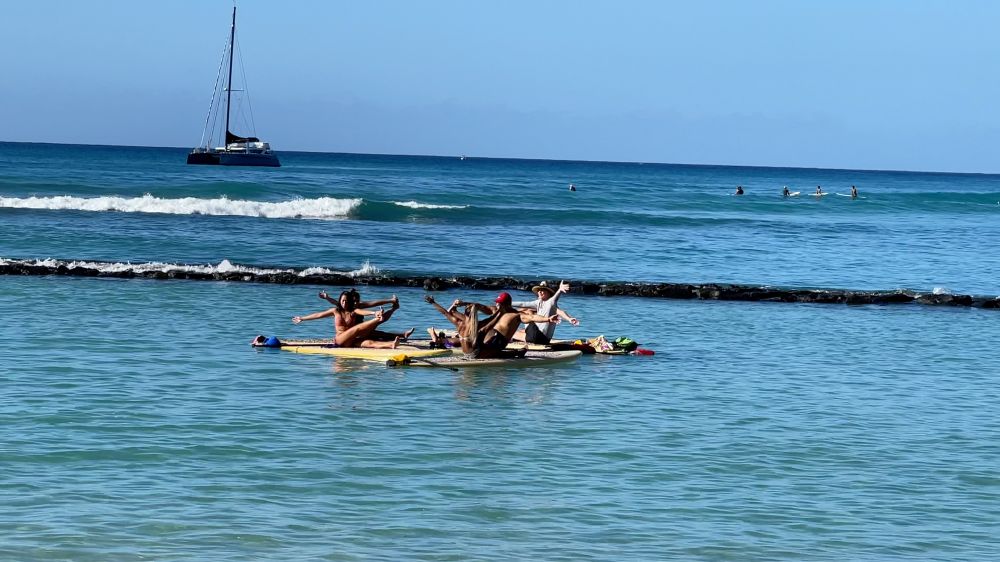 夏威夷Wakiki海滩,疫情封闭大半年后, 刚开放几天。远看海上有好多人在冲浪,近看这些美女壮男在海面上做运动锻炼,挺新颖的。她们的动作优美,是在做瑜伽?还是在教习冲浪?看看6分钟4k视频,让人耳目一新。