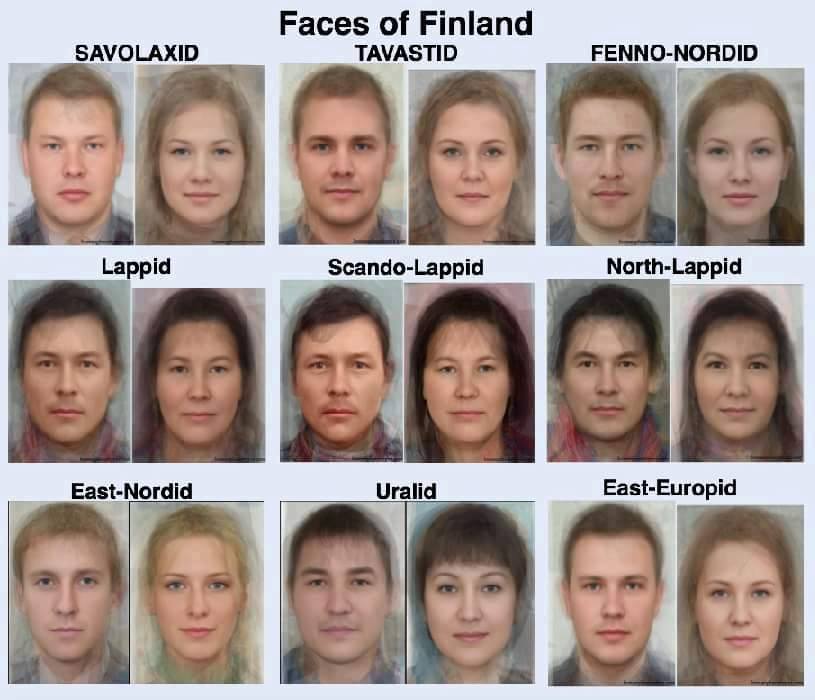 网上发现的芬兰人面相,19世纪人种分类,将芬兰人列为黄种人,因为芬兰人头园脸方,不像其他欧洲人头长脸长,看图并非如此。