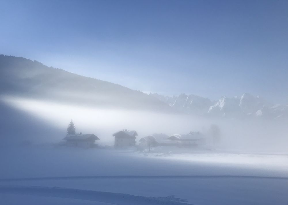 严格的说,这里只是阿尔卑斯山的边边,已是如仙如画,地铺白雪,山映旭日。