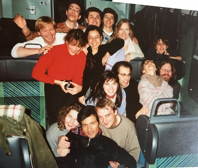 这张照片已经有近三十年的历史了。每当我看到它,就会自然地想起当年在德国上学时的青春岁月。当年我们大学的国际学生办公室组织了一次去柏林的旅行,我们一大帮来自不同国家的学生便一起踏上了开往柏林的列车。我们分别来自土耳其,法国,比利时,意大利,希腊,葡萄牙,波兰,中国,和德国,活像一个联合国,大家都用德语交流。虽然我们来自不同的国家,年轻的学生在一起互通有无,却并没有什么隔阂。当时德国铁路发行了一种火车通票,花十五马克可以在一天内坐任何一趟慢车。只要你不嫌火车慢,不嫌它每站都停,你就可以悠悠哉哉地坐着火车从西到东,从北向南地横穿德国。我们一帮穷学生就是这么去柏林的。一路上大家嘻嘻哈哈地聊天,倒也不觉得旅途的漫长。