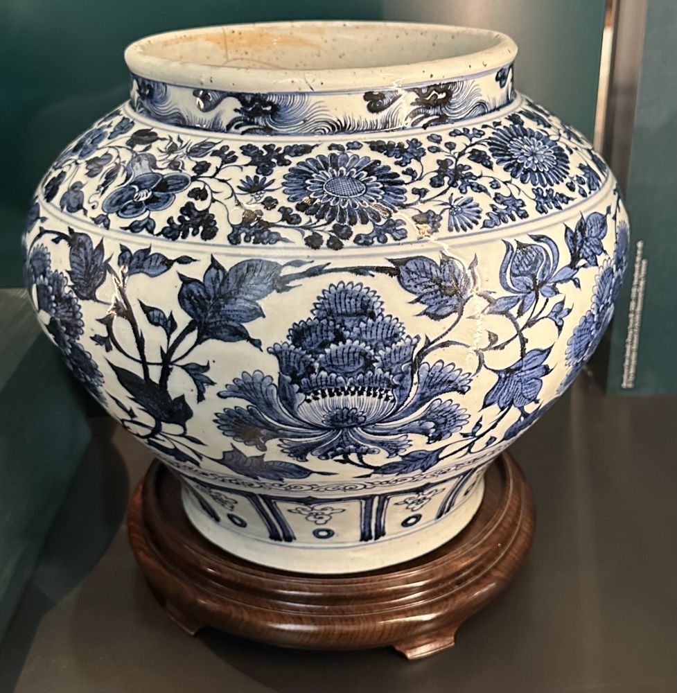 今天上午吃了一家黎巴嫩店的早餐,有酸奶,羊肉香肠,薰鱼和黑面包,别具一格。然后乘地铁去了大英博物馆。免费!我进去后一头就扎进了亚洲馆,买了可听的导说。亲眼见到了我梦寐以求的宋瓷和元代的青花瓷。还看了清代胜期的彩瓷,及明瓷和唐三彩;精美的景泰蓝,古画,石雕佛像和远古时代的青铜艺术品。还去了专门的玉器收藏厅。看的我头都晕了,却只知皮毛。中华文化的精深、美丽和伟大,无以伦比!令人起敬!我的大女儿再三叮嘱我要加快速度,说是有看不完的东西。 果然还有整整一个布满了中国古瓷大厅!不知不觉就逛到了博物馆关门的点儿(下午五点)。我一方面大饱眼福,另一方面却是有些心情不爽。此情此景,为什么一个美籍华人要跑到英国博物馆才能看到最美的中国古瓷? 这里面自然大有文章!谁又愿意背井离乡呢?其中自然有许多的无奈!唉!走题了!世界上只有强大又文明的国家才会吸引许多外国移民,眼前的伦敦和当今的美国就是实例!我希望有一天中国的土地上也会有许多外国脸面,也希望在中国的博物馆里可以目睹中国的国宝!