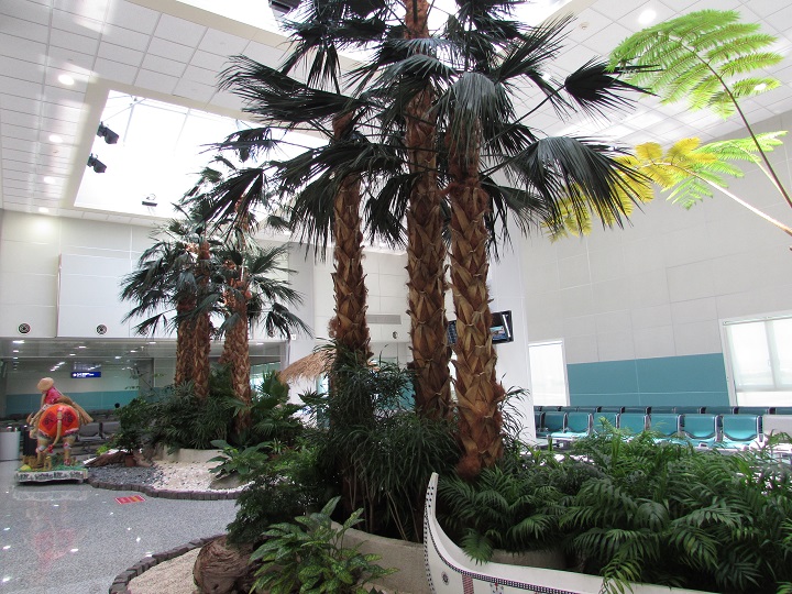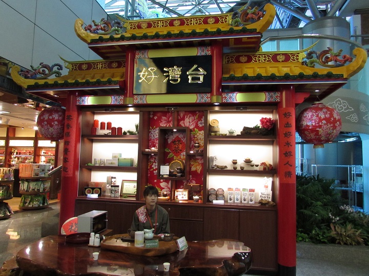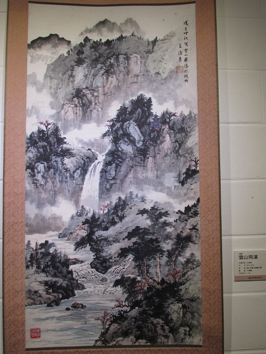 台湾桃园机场人文气息很浓,这是登机门旁边的山地景色