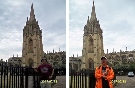 图27. 我儿在贝列尔学院(左)和老校方庭(右)前面的留影