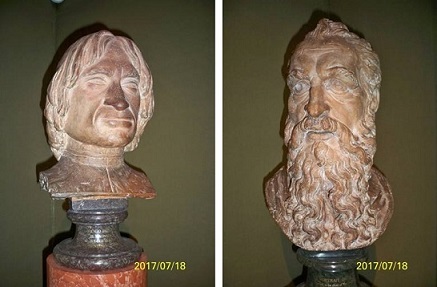 图42. 欧洲展厅里的洛伦佐头像(左)和班迪奈里(右)的自雕头像