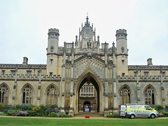 我从伦敦坐车到剑桥时,差不多已经到中午了,于是先到集市广场去吃午餐,同一个中餐食品亭,同样吃包子,然后酒足饭饱(以茶代酒)走到圣约翰学院去参观。