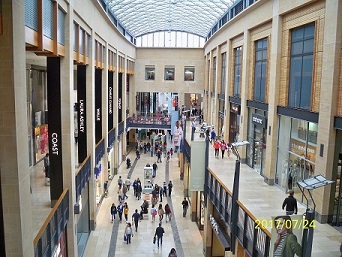 剑桥的市中心有个“大拱廊”(Grand Arcade),是个大型商场。上次没有时间进去,这次人都来了总得进去看看。不过也没白来,在一个书店里买了一本中文书《英国参观指南》,下图是剑桥市中心的大拱廊商场。