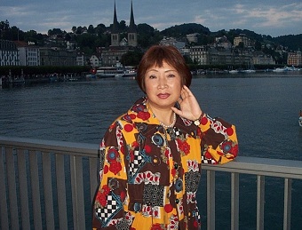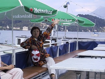 下午3点,我们回到卢塞恩,没有休息就直接参加湖上的船游,下图是我妻上船后的留影。